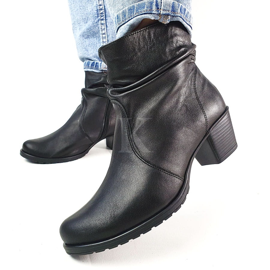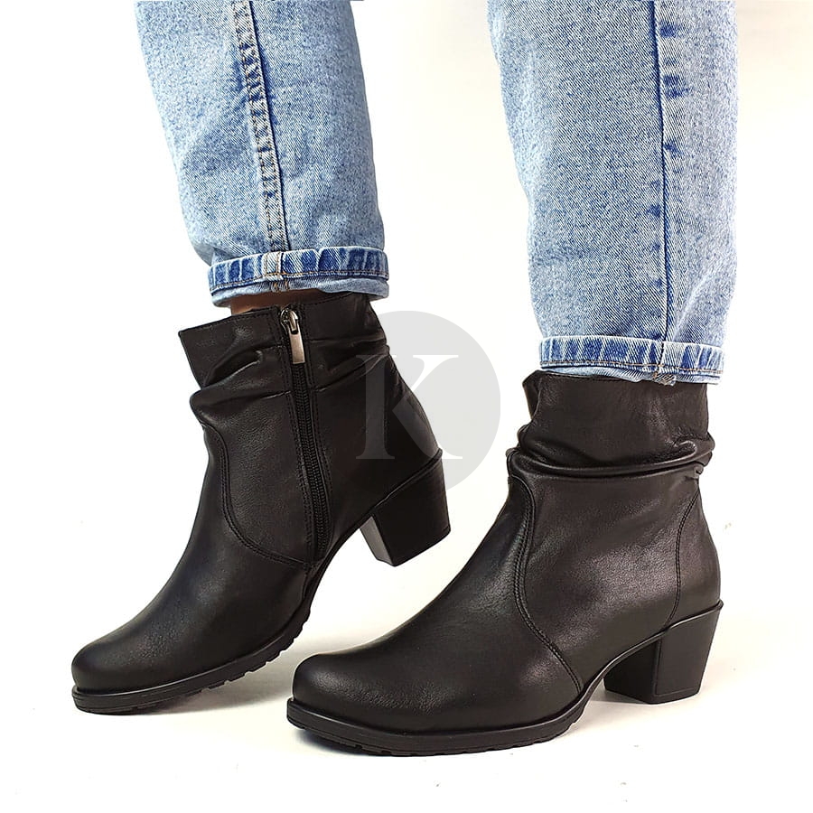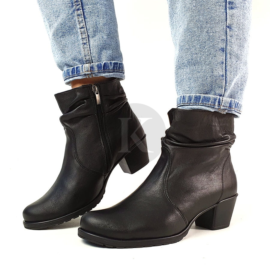 Botki Skórzane Czarne na Słupku Polski Producent 5862