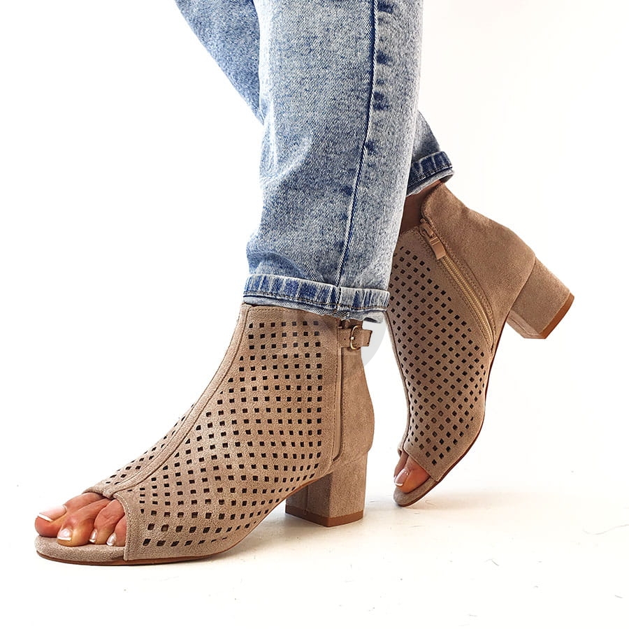 Botki znanej marki T.Sokolski pochodzące z najnowszej kolekcji. Cholewka wykonana z wysokiej jakości tkaniny w kolorze beżowym. Wkładka wykonana została ze skóry ekologicznej, która zapewni wygodę podczas codziennego użytkowania. Znajdujący się po wewnętrznej stronie zamek zapewni szybkie i bezproblemowe zakładanie jak i zdejmowanie obuwia. Nosek o migdałowym lekko uniesionym ku górze. Ażurowa cholewka dodaje obuwiu oryginalnego wyglądu oraz zapewni odpowiednią cyrkulacje powietrza. Świetnie dopasują się do stylizacji z sukienkami jak i jeansami. Całość osadzona na 5 centymetrowym obcasie.