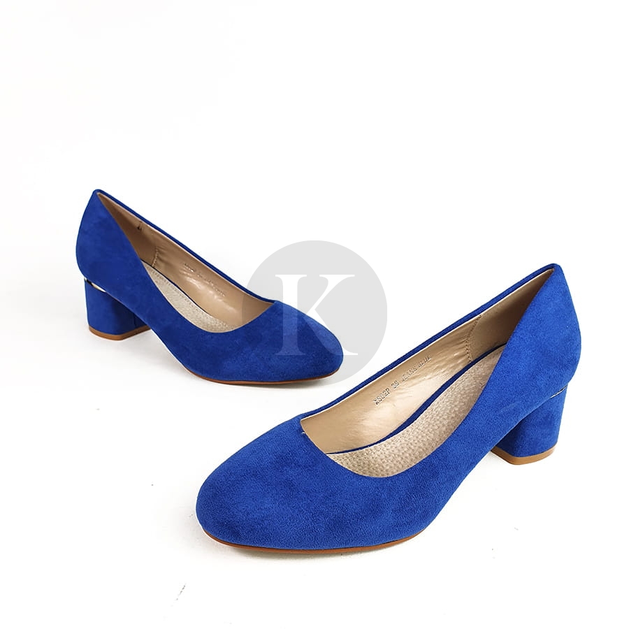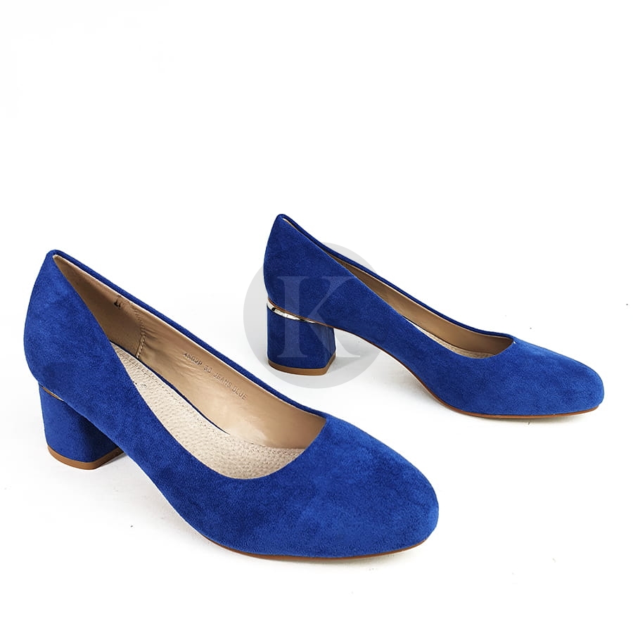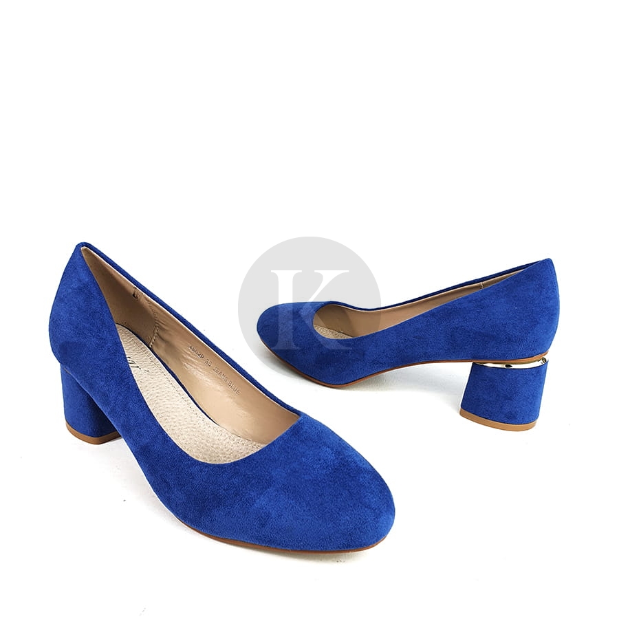 Czółenka Niebieskie Zamszowe na Niskim Słupku Charlotte