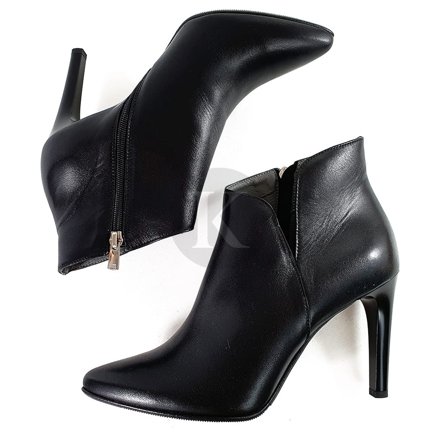 Eleganckie Botki Szpilki Czarne Skóra Naturalna Kati 1680