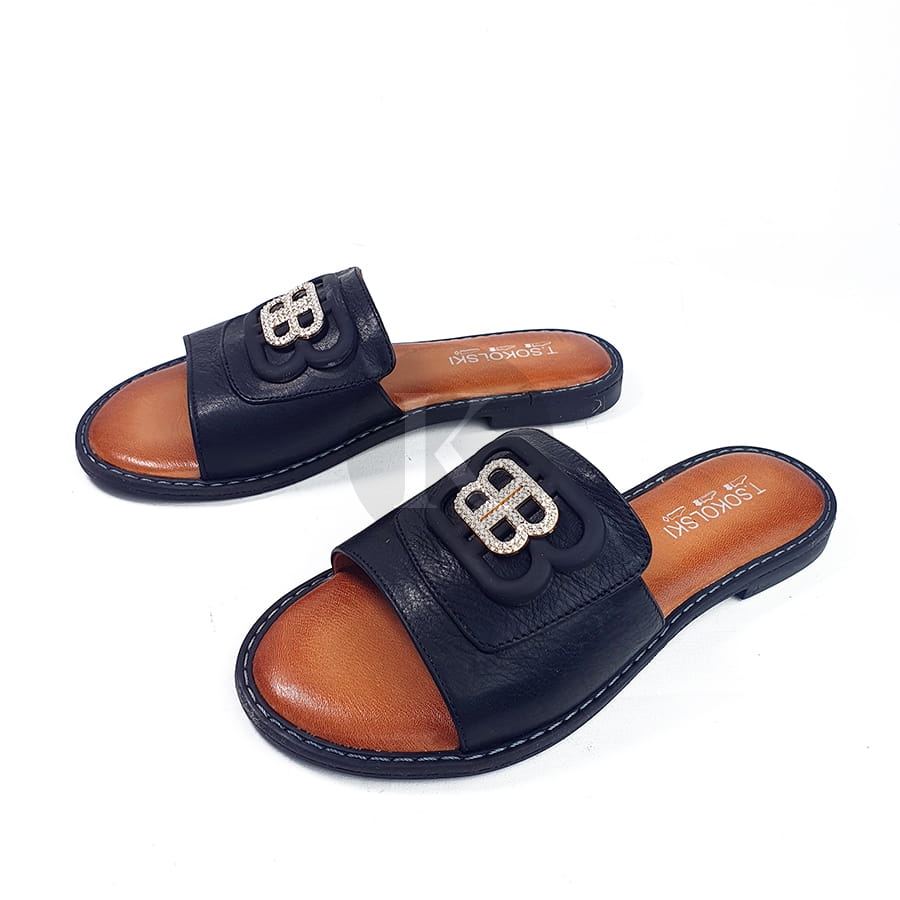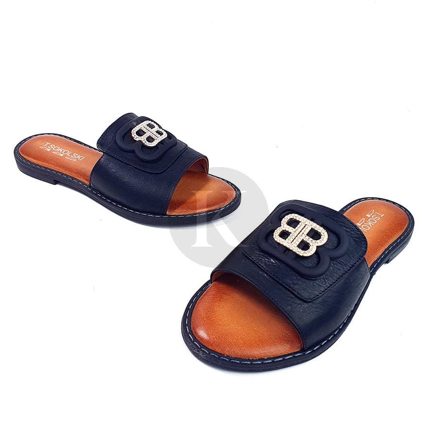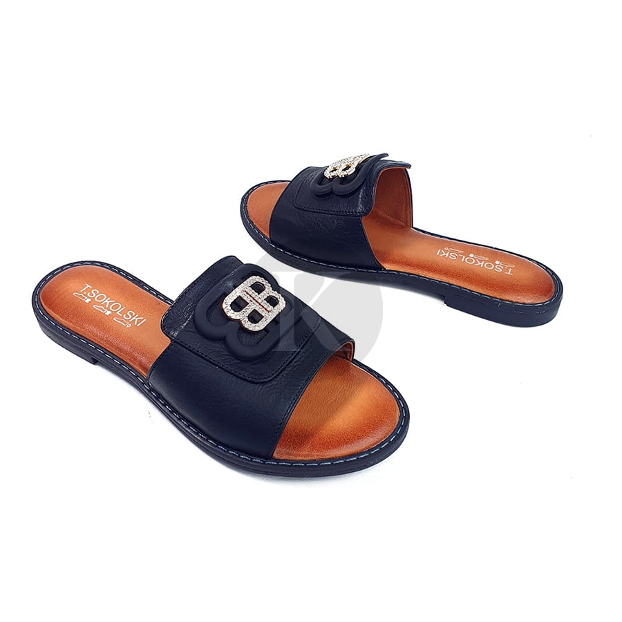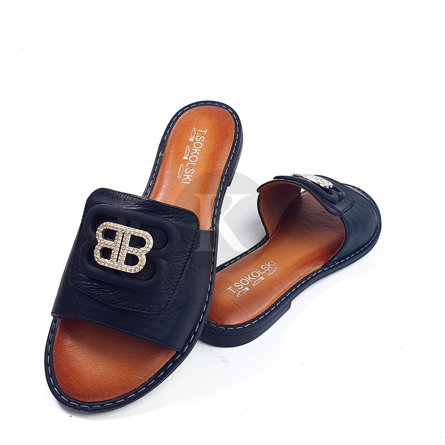 Klapki Na Płaskiej Podeszwie Czarne Skórzane T Sokolski AMI L25-167
