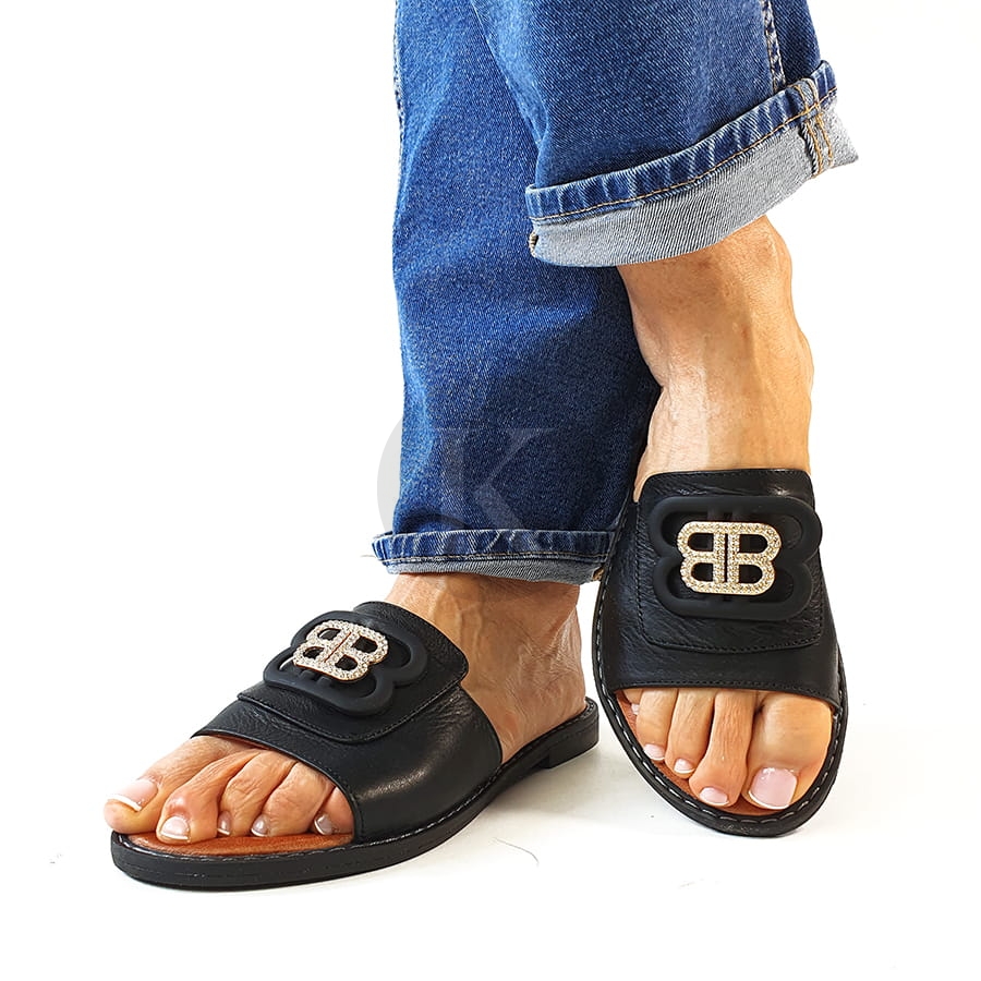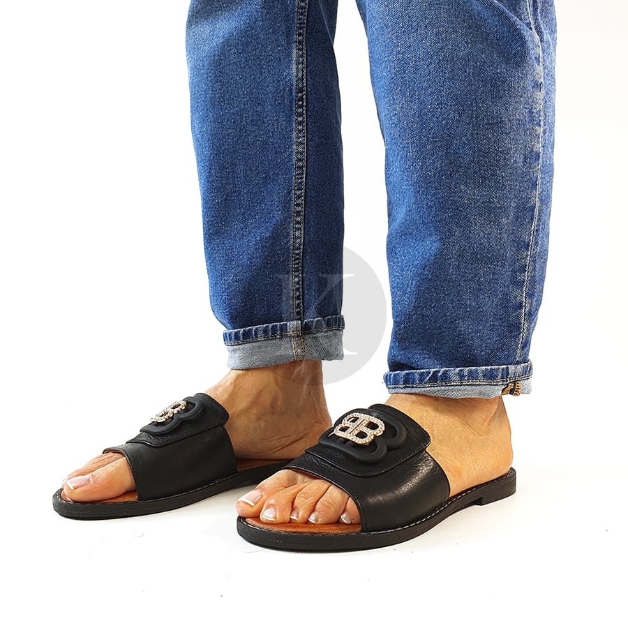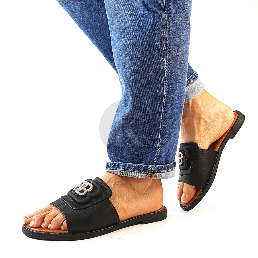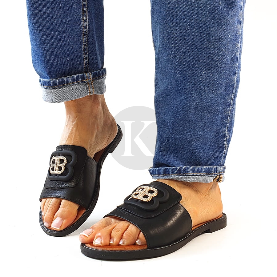Klapki Na Płaskiej Podeszwie Czarne Skórzane T Sokolski AMI L25-167