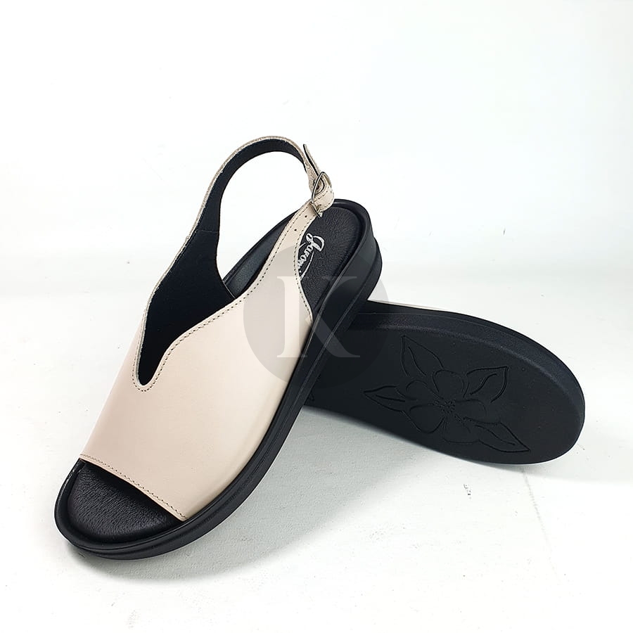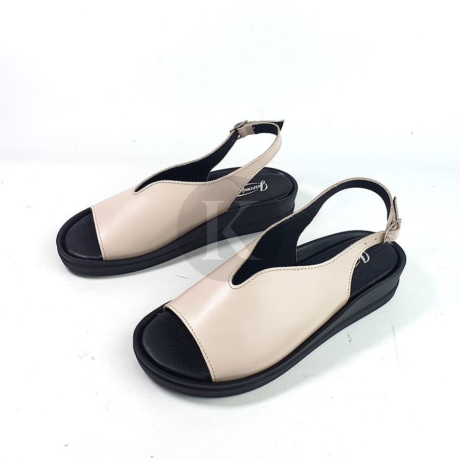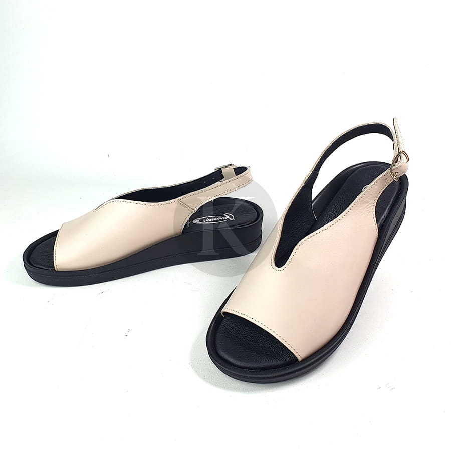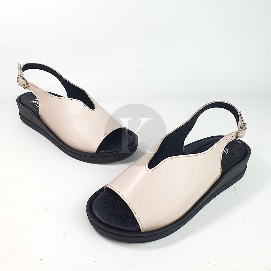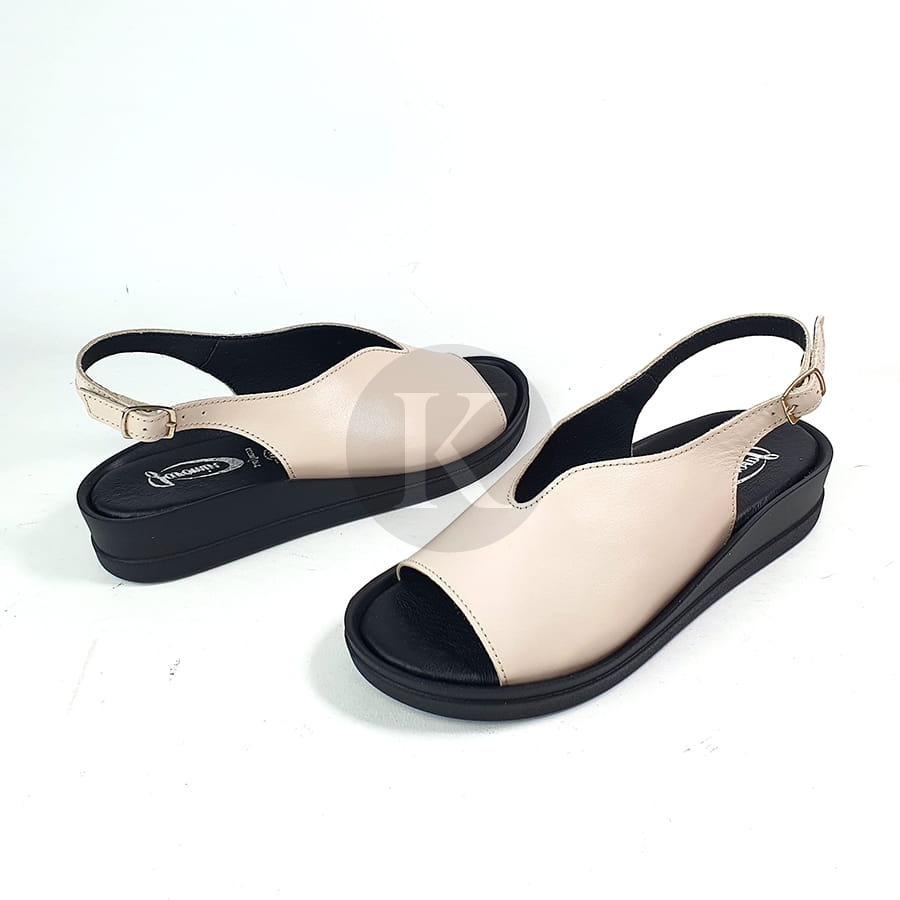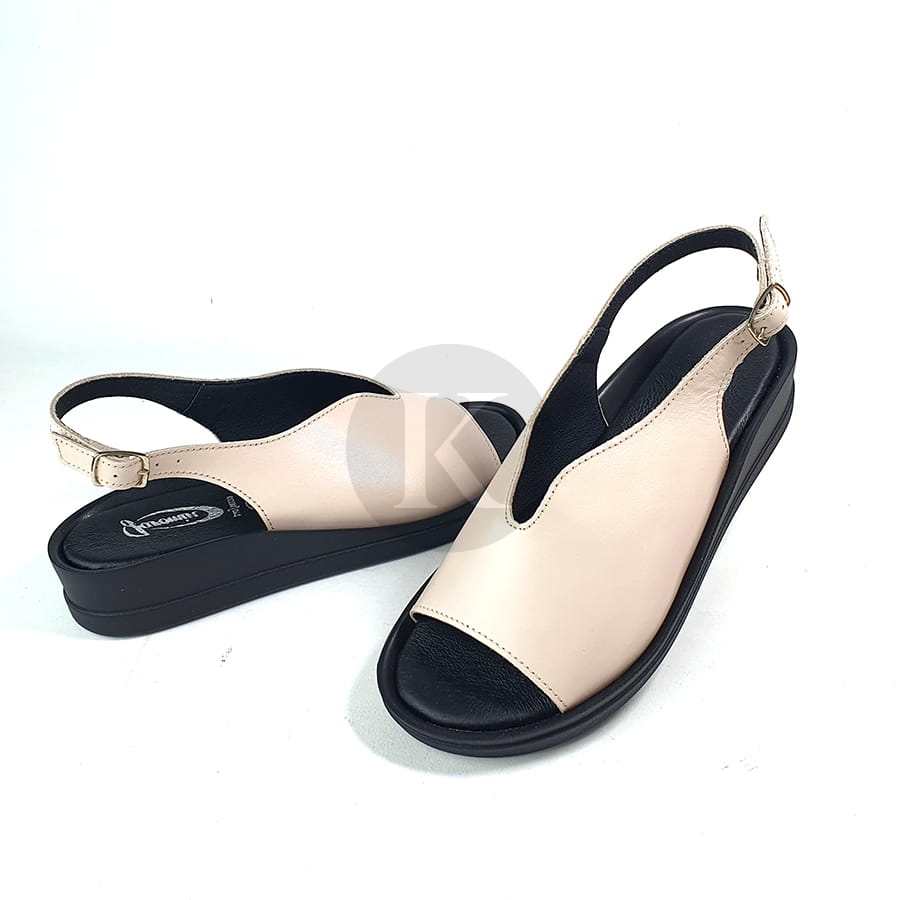 Sandały Beżowe Skórzane Na Niskiej Platformie Nano 7626