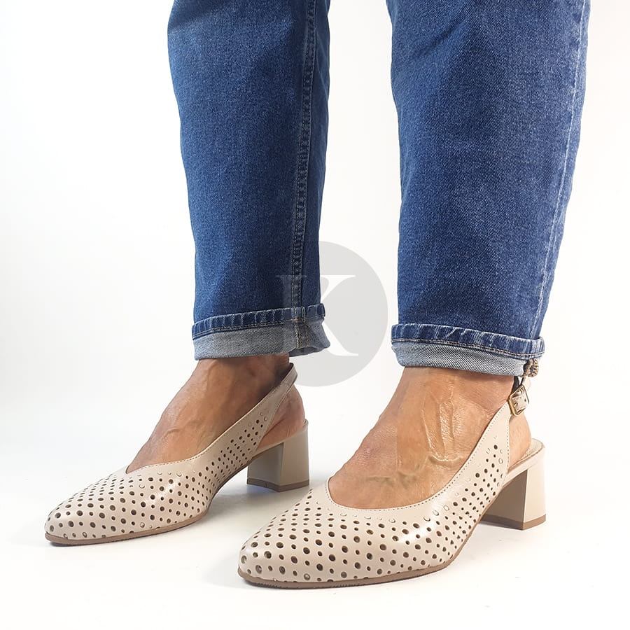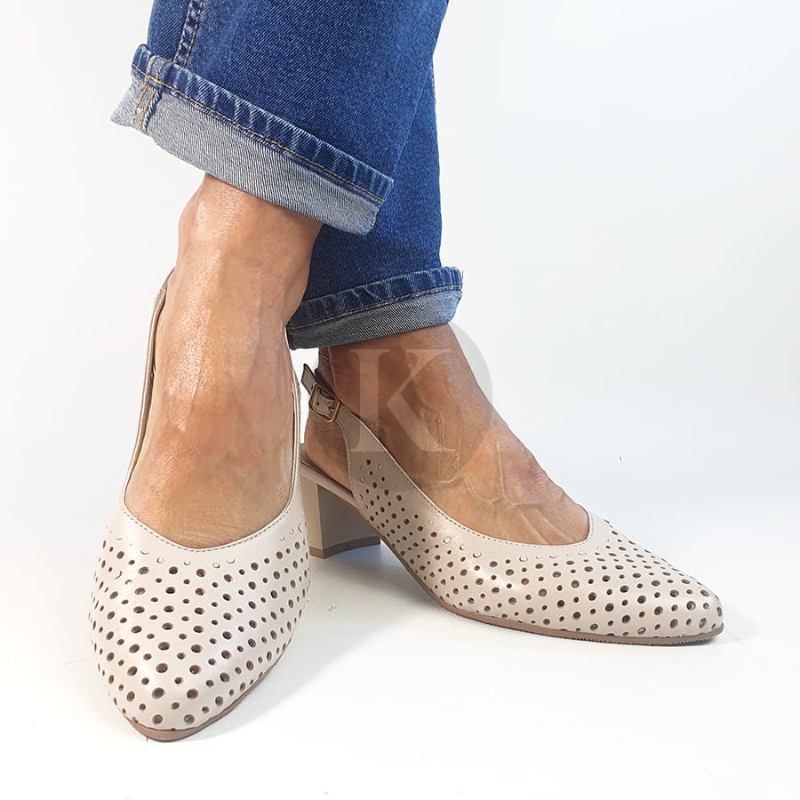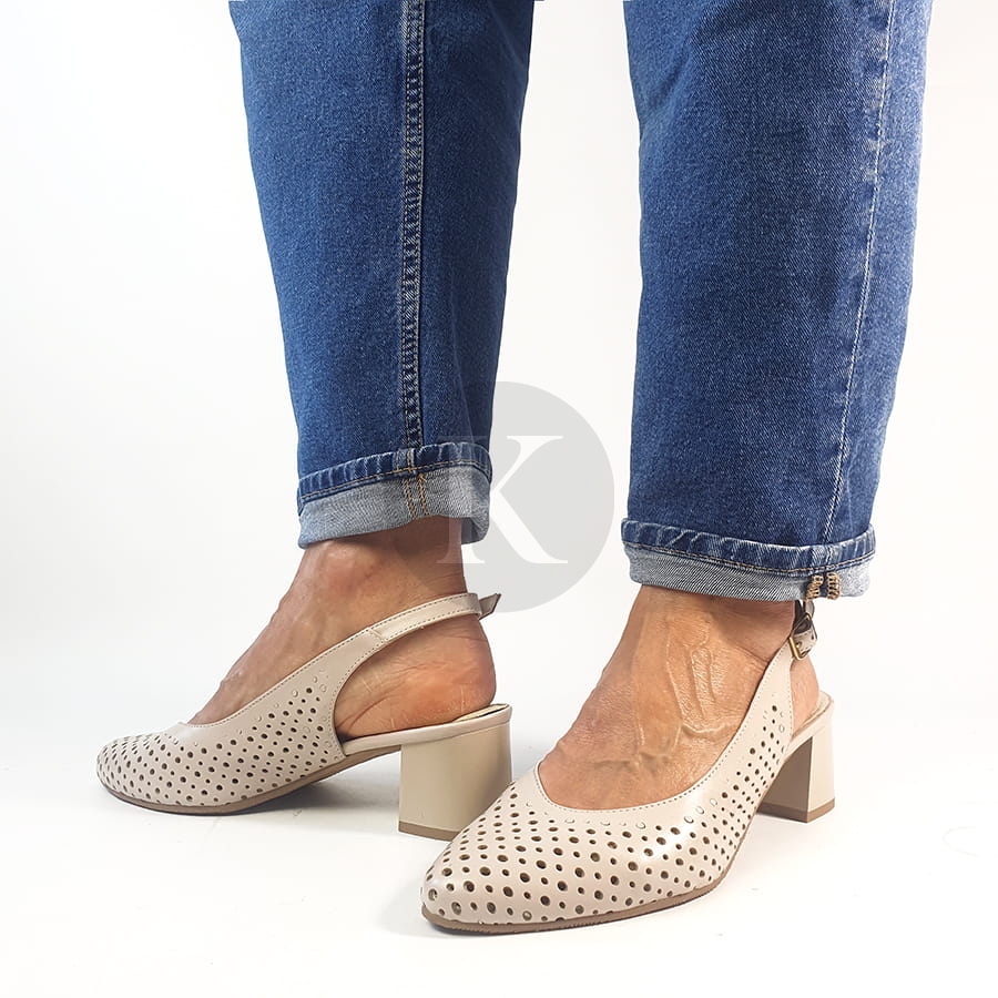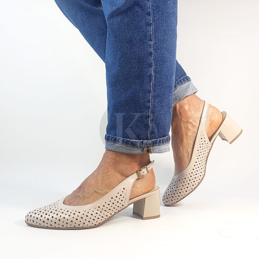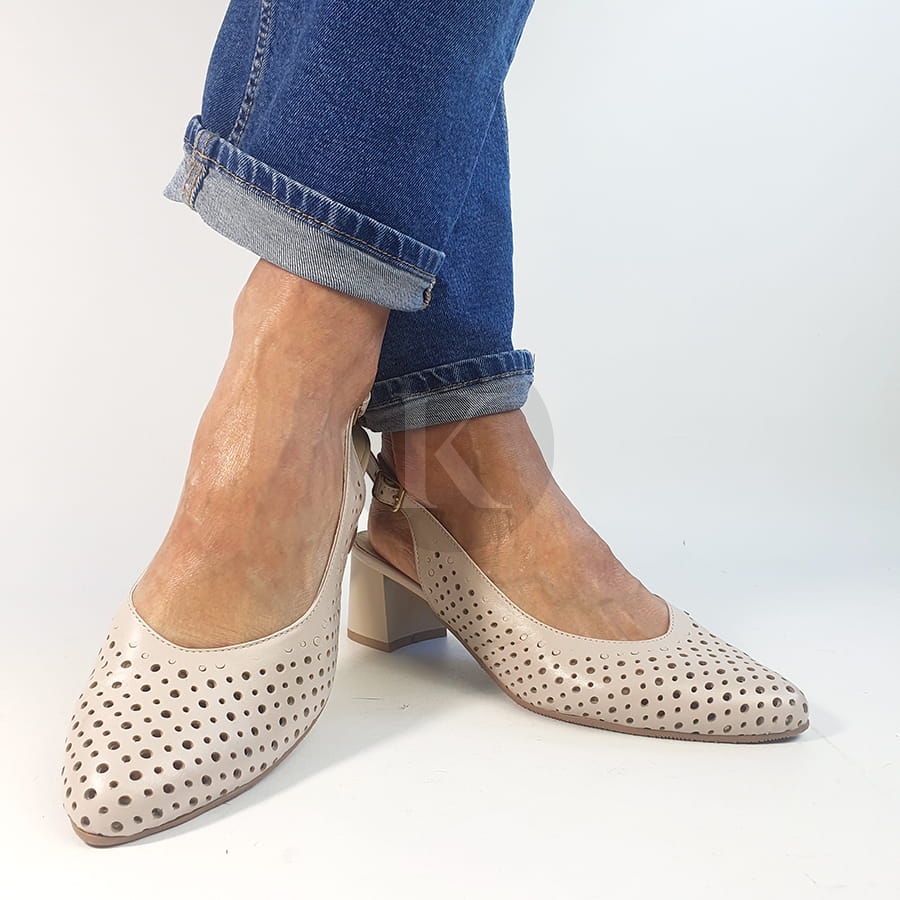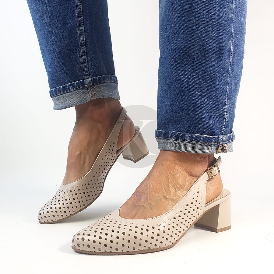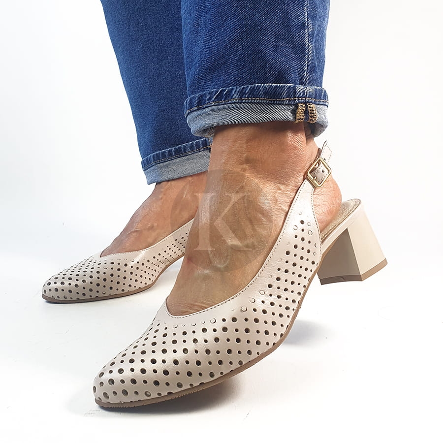 Sandały Na Niskim Słupku Skórzane Beżowe Ażurowe Di Marco 2524