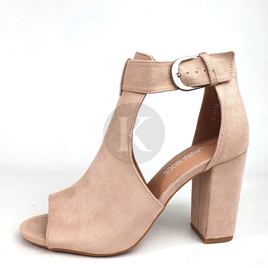 Sandały Na Słupku Cut Out Beżowe Tessi