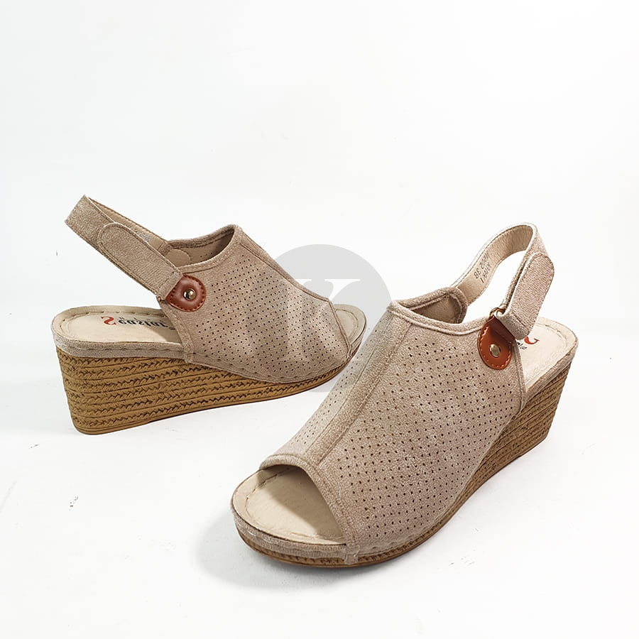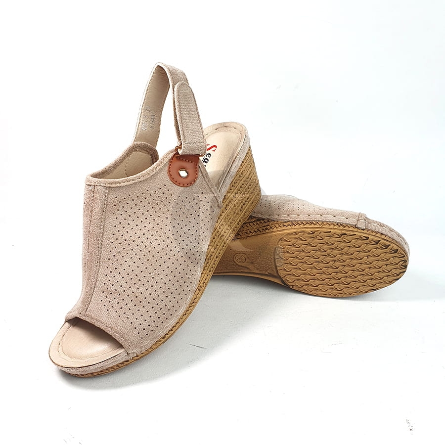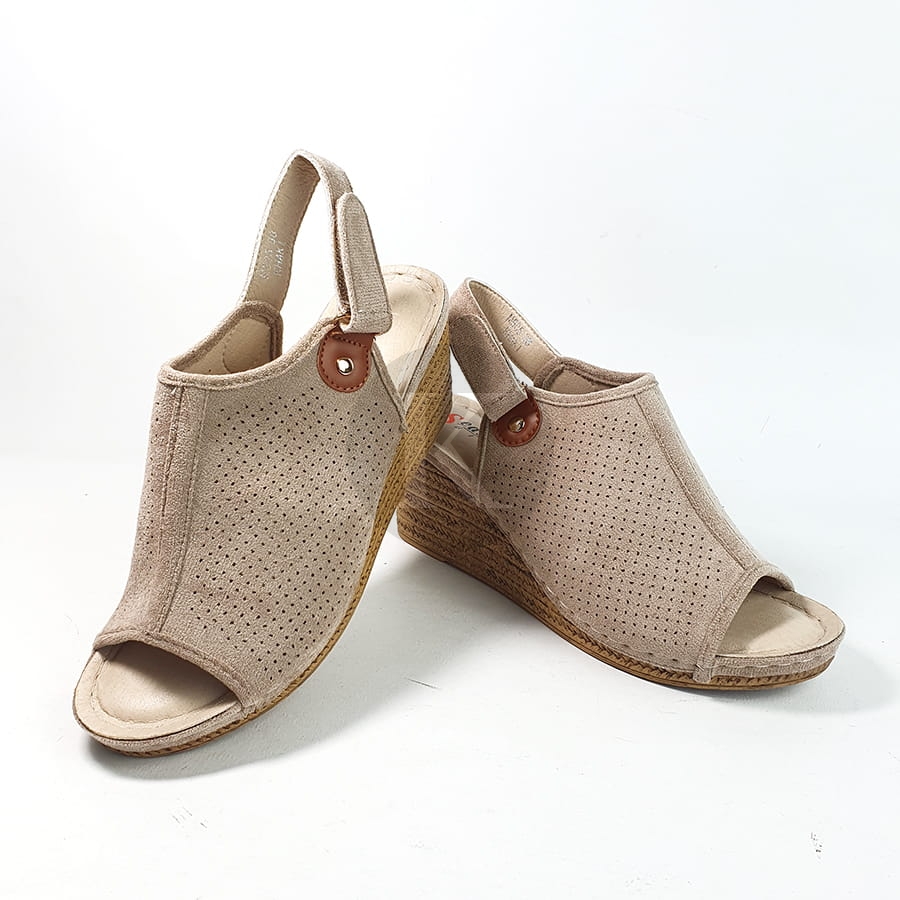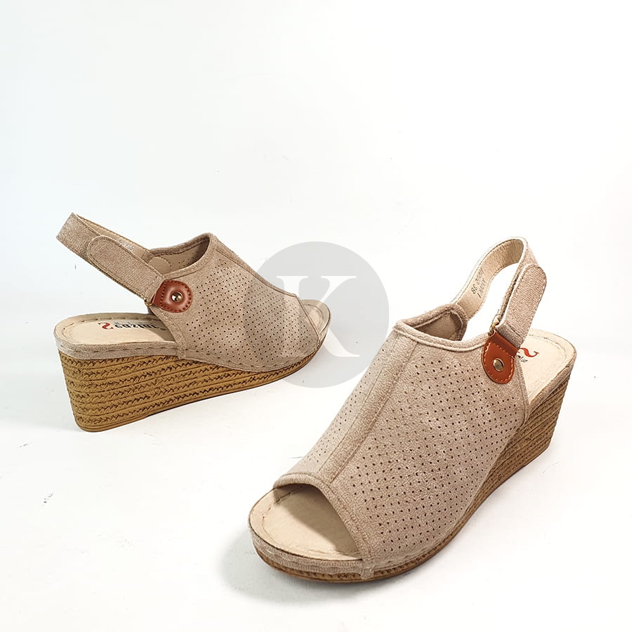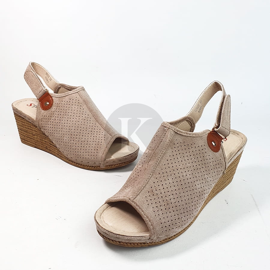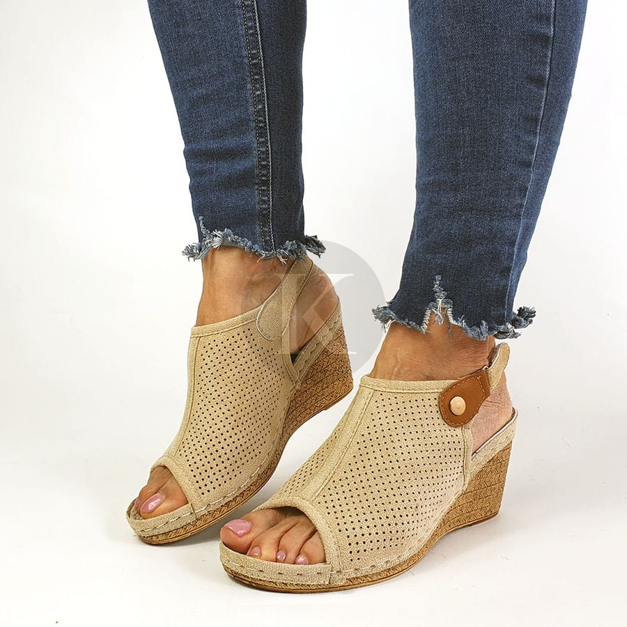 Sandały Zamszowe Beżowe na Koturnie Janet