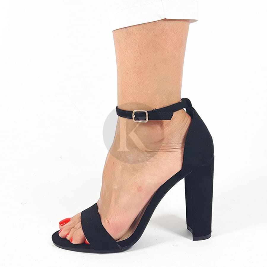Sandały New Kendall na wysokim słupku, z prostymi paskami wokół palców i kostki. Zakryta pięta. Zapinane na małą sprzączkę, dzięki której możesz dopasować szerokość. Wykonane z ekozamszu. To bardzo uniwersalny fason, który pasuje zarówno do kreacji na wesele, jak i do luźnych jeansów na lato!